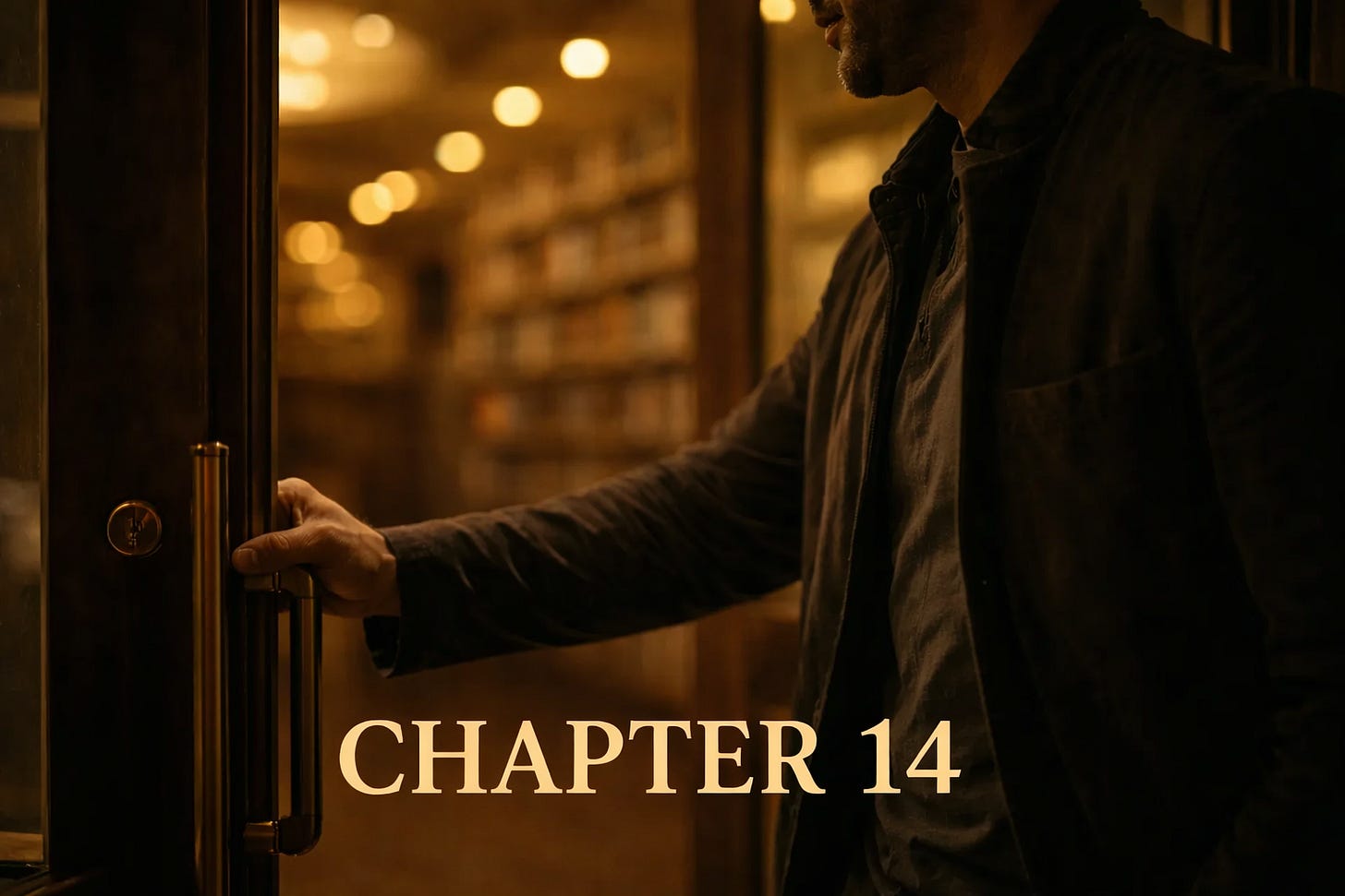 The man stood without moving. Only his eyes shifted, scanning the inside of the shop, taking in the space, finding the exits, learning its basic shape. Only once he was satisfied did he let go of the handle and step forward.